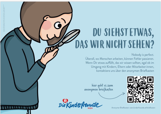 Seit dem 1. September setzen wir Kinderfreunde das Hinweisgeberschutzgesetz um. Hierbei handelt es sich um eine EU-Richtlinie für Betriebe über 50 Mitarbeitenden. Wir Kinderfreunde haben dazu einen digitalen Briefkasten eingerichtet, über den Hinweisgebende sich, auch anonym, mit den Wiener Kinderfreunden bzw. den Wiener Kinderfreunden aktiv in Verbindung setzen können.
